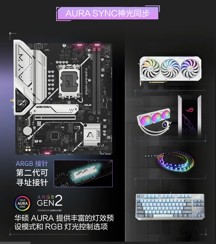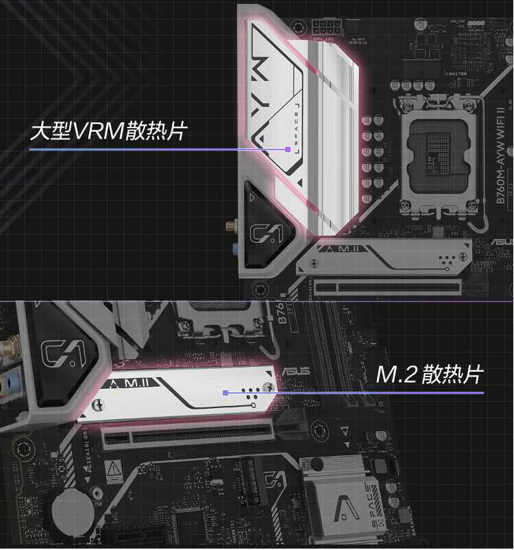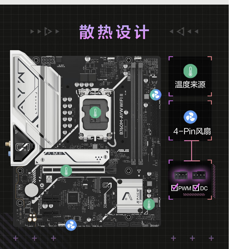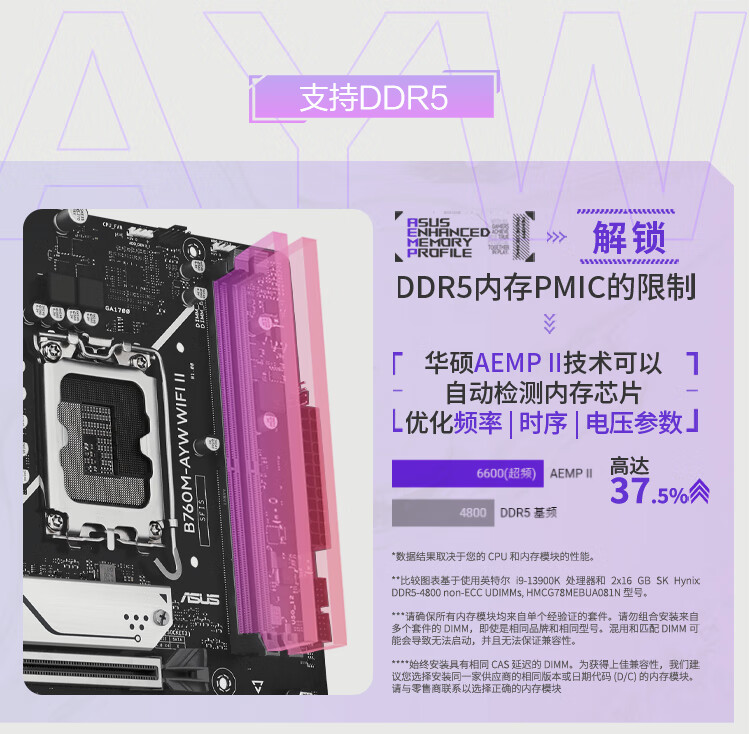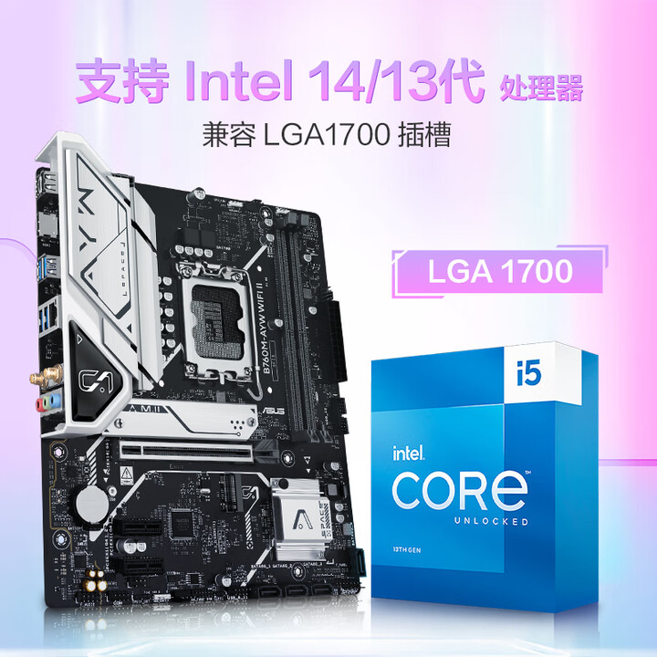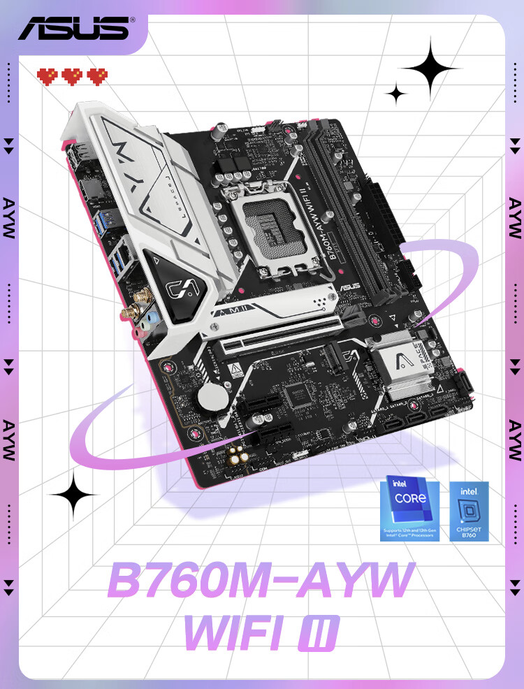 华硕B760M-AYW WIFI II 哎呦喂主板 支持DDR5 CPU 13600KF/13490F(Intel B760/LGA 1700)